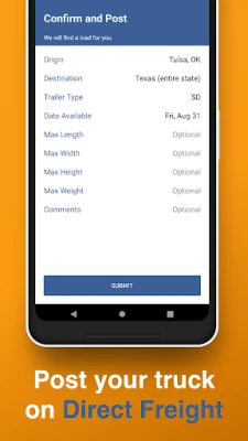 The Direct Freight Driver app lets truck drivers search more than 300K loads daily from reputable brokers & shippers on the Direct Freight network. Users sign in with a current Direct Freight Services username and password to start searching for loads. Enjoy unlimited searches with the Direct Freight Driver app.
