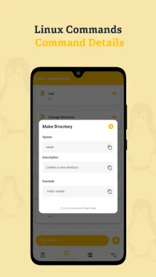 The Linux Commands Cheat Sheet is a mobile app designed to help users learn and use common Linux commands. It features a searchable database of commands, detailed explanations of each command's syntax and usage, and interactive features like a quiz mode and the ability to mark favorite commands.